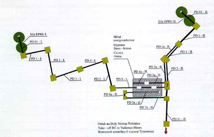 Kapacita pasového přepravníku - 410 až 1995 t/hodinu